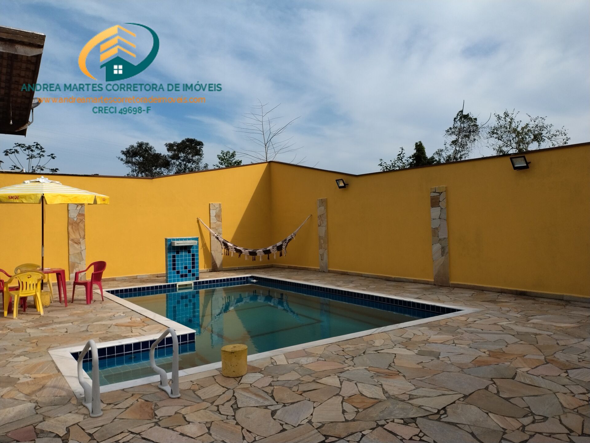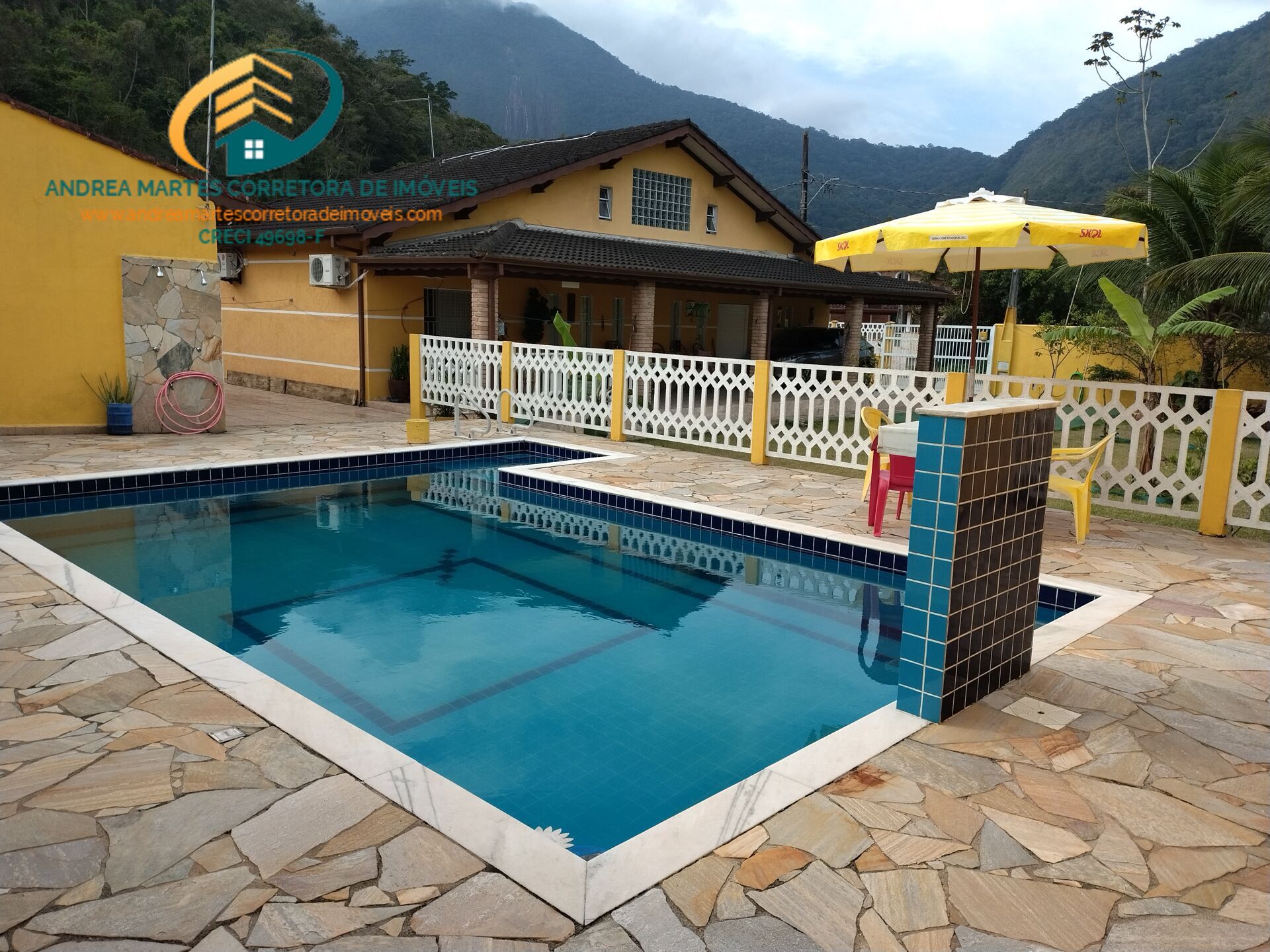 Casa com piscina à venda no Recanto Verde Mar no Massaguaçu em Caraguatatuba. Casa com très dormitórios com ar condicionado, sendo uma suíte, sala ampla para dois ambientes, sala de jantar, cozinha, banheiro social, área de serviço, garagem coberta para três carros e espaço para mais dois carros fora da garagem, edícula com uma suíte, uma banheiro e varanda com mesa de bilhar e área de churrasqueira com pia, fono à lenha, churrasqueira e fogão à lenha, piscina e jardim. A casa ainda conta com placas solares e poço artesiano com água potável. Documentação impecável para financiamento bancário. Tudo isto em um lugar muito tranquilo, rodeada pela natura, em associação (tipo condomínio fechado) com acesso fácil à praia, portaria 24 horas, ronda motorizada, academia ao ar livre e várias câmeras de monitoramento. Um excelente investimento para quem está em busca de uma vida de qualidade e segurança. Agende uma visita e venha conhecer!!! Para mais informações entre em contato pelo WhatsApp (12) 99720-6157/99676-4476 ou Tel. fixo (12) 3884-8699 - falar com Andréa Martes Corretora de Imóveis - CRECI 49.698